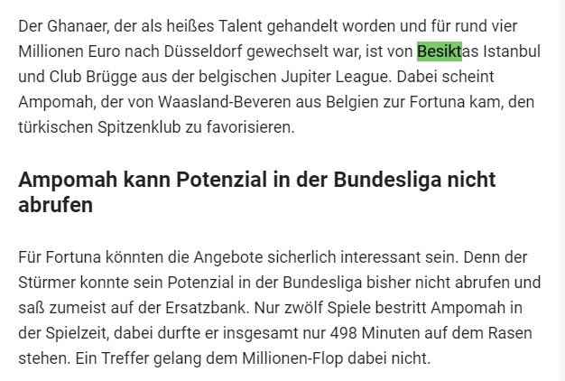 Kısa süre önce Fortuna Düsseldorf'ta forma giyen Nana Ampomah için transfer girişimlerinde bulunduğu bilinen Kara Kartal'a, Club Brugge Teknik Direktörü Philippe Clement'in rakip olduğu duyurulmuştu.