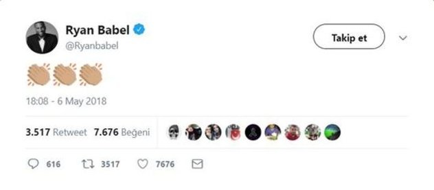 Twitter'dan tepkisini belli eden Hollandalı oyuncu, "Alkış" emojisi bıraktı. Babel'in bu paylaşımı binlerce kez paylaşıldı ve taraftarlar paylaşımın altında tartıştı.