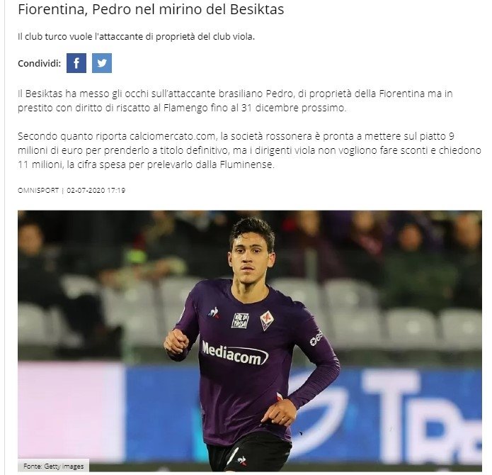 Ocak transfer döneminde Fiorentina, oyuncusunu 1 milyon euro bedelle Flamengo'ya kiralamıştı. Pedro'nun Flamengo ile kiralık sözleşmesi Aralık 2020'de sona erecek. Beşiktaşlı yöneticiler, Fiorentina ile yapacağı müzakerelerde İtalyan kulübünden oyuncuyu, Flamengo'da forma giymesine karşın isteyecek.