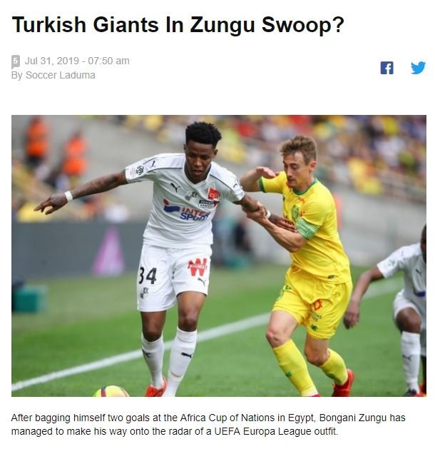 Ülke basınında çıkan haberlere göre Beşiktaş, Fransız ekibi Amiens'te forma giyen 26 yaşındaki Güney Afrikalı orta saha oyuncusu Bongani Zungu ile yakından ilgileniyor. Ancak kulübünün oyuncuyu henüz bırakıp bırakmayacağına karar vermediği ifade ediliyor. Oyuncunun Instagram hesabı üzerinden Beşiktaş ve Galatasaray'ı takip etmesi de dikkatlerden kaçmadı.