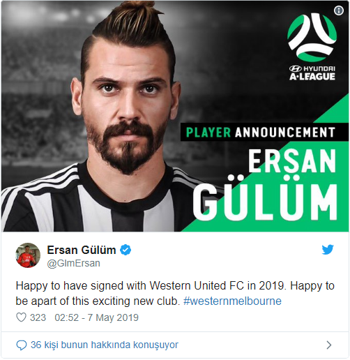 Ocak ayından bu yana kulüpsüz olan Ersan Gülüm, Avustralya A-Lig'in yeni ekiplerinden Western United'a imza attı. 31 yaşındaki deneyimli futbolcu, Melbourne temsilcisine transferini sosyal medya hesabından duyurdu.