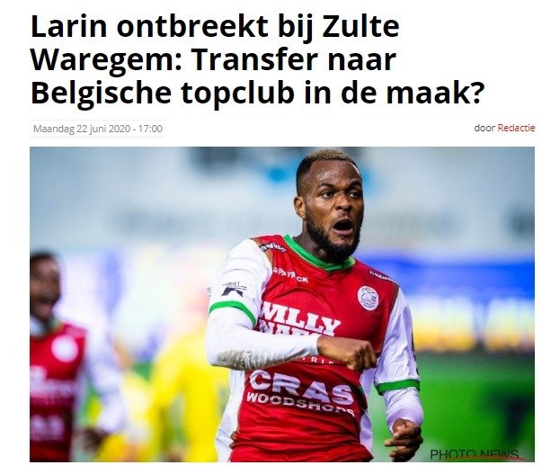 Bu rakamı oldukça yüksek gören Zulte Waregem kulübü, Larin'in bonservisini almaktan vazgeçti ve devreye Royal Antwerp girdi.