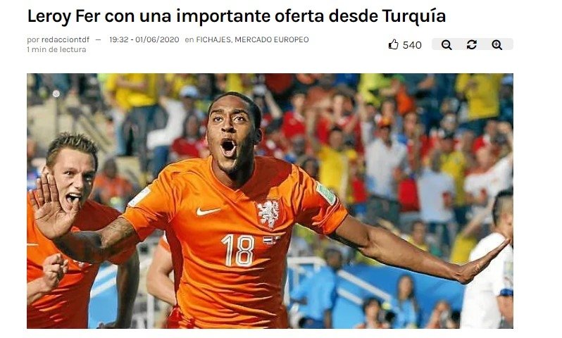 Şu anda aktif futbol hayatını Feyenoord'da sürdüren Fer için yazılan Beşiktaş haberinde şu sözlere yer verildi;