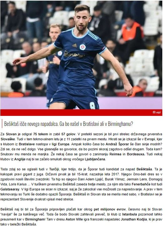 Beşiktaş'ın UEFA Avrupa Ligi'ndeki rakiplerinden Sloven Bratislava'da forma giyen Sporar için Sloven basınından önemli bir haber aktarıldı...