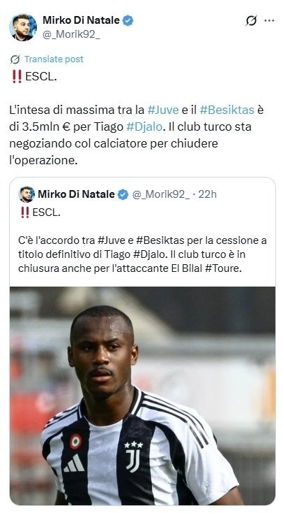 Mirko Di Natale'nin haberine göre siyah-beyazlılar, Djalo'nun bonservisi konusunda Juventus ile 3.5 milyon Euro karşılığında anlaşma sağlamıştı.