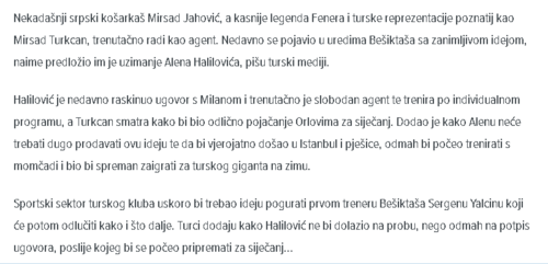 Serbest oyuncu konumunda olan Halilovic'in, Beşiktaş'la devre arasından itibaren geçerli olmak üzere uzun süreli bir sözleşmeye imza atacağı da ifade edildi.