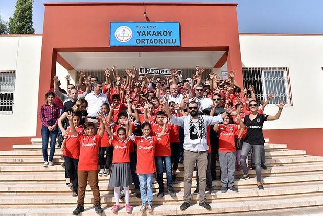 Kendilerine hediye edilen formaları giyen çocuklar, sınıflarında taraftarlarla birlikte slogan atıp, Beşiktaş marşlarını seslendirdi ve hatıra fotoğrafı çektirdi.