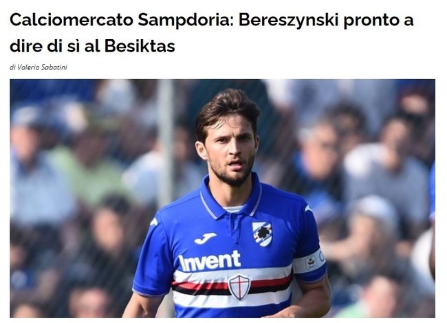 Haber başlığında Bereszynski'nin Beşiktaş'ın teklifini kabul etmeye hazır olduğu ifade edilirken, Sampdoria'nın oyuncu için 5 milyon euroluk bonservis talep ettiği kaydedildi.