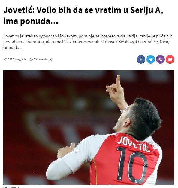 Haziran 2021 itibarıyla Monaco ile sözleşmesi sona eren Stevan Jovetic, geleceğine ilişkin konuştu. Beşiktaş ve Fenerbahçe'nin transfer listesinde yer aldığı bilinen yıldız isim, kendisine gelen teklikleri doğruladı.