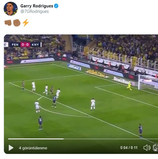 Fenerbahçe'nin yıldız futbolcusu Garry Rodrigues'ten ilginç bir paylaşım geldi. Beşiktaş ile Galatasaray dev derbi maçında 3 puan için kozlarını paylaştı. Her iki takımın da mutlak kazanmak için sahaya çıktığı mücadeleyi siyah-beyazlılar 1-0 kazanarak önemli bir 3 puanın sahibi oldu. Derbi maçı bittikten sonra bir dönem Galatasaray forması giyen Garry Rodrigues sosyal medya hesabından Fenerbahçe'nin Konyaspor'u 5-1 yendiği maçta attığı golün videosunu paylaştı. Video Fenerbahçeli taraftarlar tarafından binlerce yorum ve beğeni aldı.