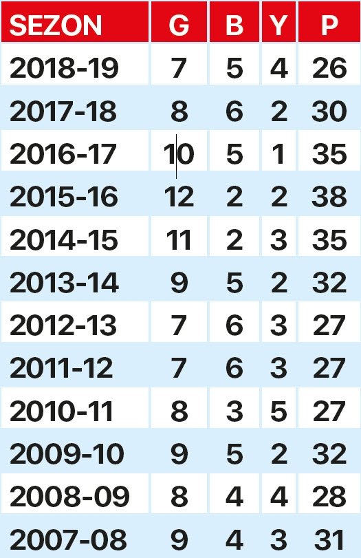 Spor kamuoyu, Beşiktaş'ın pazar günü oynanan Trabzonspor derbisinde 2-0 geriden gelerek skoru 2-2'ye getirmesini konuşuyor. Sonuç olarak siyah-beyazlıların +96'da attığı golle 1 puanı hanesine yazdırması 'kötünün iyisi' olarak gösterilse de, Beşiktaş, 16. haftalar itibarıyla son 12 sezonun en kötü performansını sergiliyor. Teknik direktör Şenol Güneş yönetiminde 2018-2019'un geride kalan 16 haftasında 7 galibiyet, 5 beraberlik ve 4 mağlubiyet alarak 26 puan toplayabilen siyah-beyazlı takım, önceki 11 sezonun gerisinde kaldı.