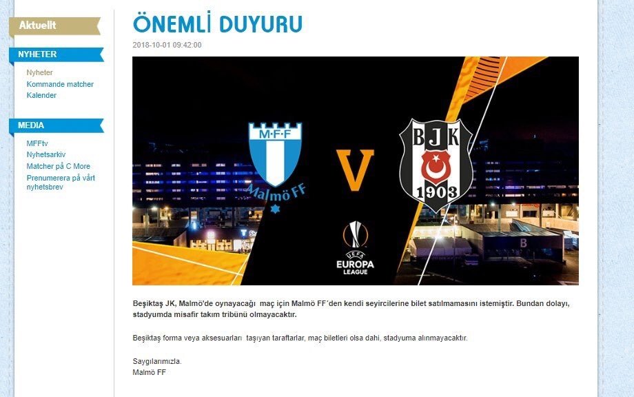 Malmö'den Beşiktaş maçıyla ilgili Türkçe açıklama yapıldı;