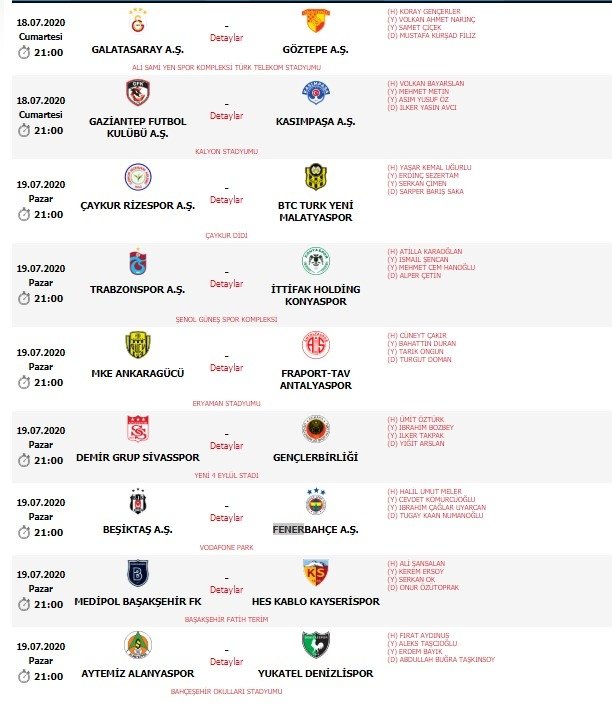 Maçlar ve maçları yönetecek hakem listesi şu şekilde;