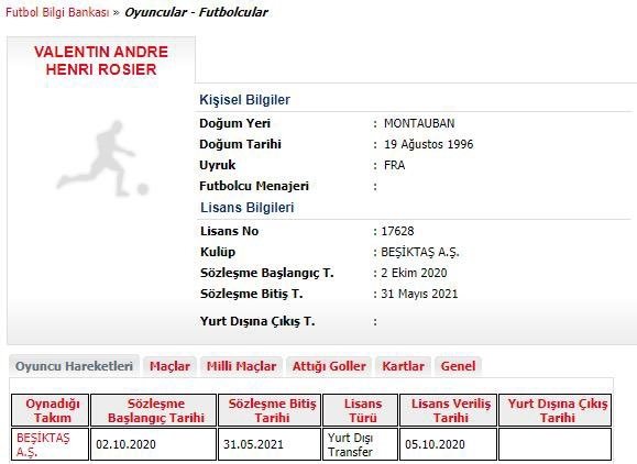 Süper Lig ekiplerinden Beşiktaş, sağ bek mevkisi için Valentin Rosier'i transfer etmişti. Siyah-beyazlılar, Portekiz ekibi Sporting'den kiralık olarak kadrosu