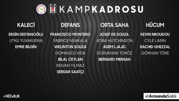 İşte Beşiktaş'ın Rizespor maçı kamp kadrosu...