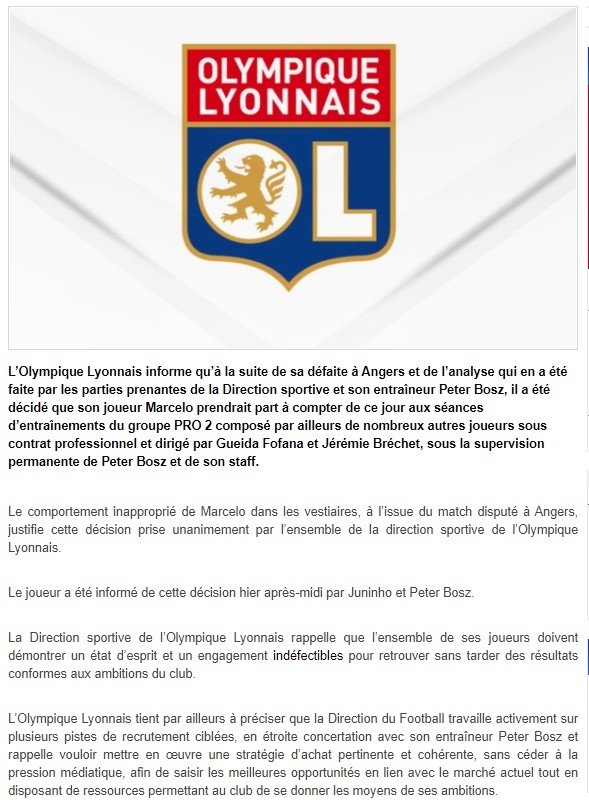 Ligue 1'in ilk 2 haftasında galibiyet alamayan ve toplam 4 gol yiyen Olympique Lyon'da teknik direktör Peter Bosz'un Brezilyalı oyuncunun performansından ve oyuna yaklaşımından memnun olmadığı ve gönderilmesini talep ettiği kaydedildi.